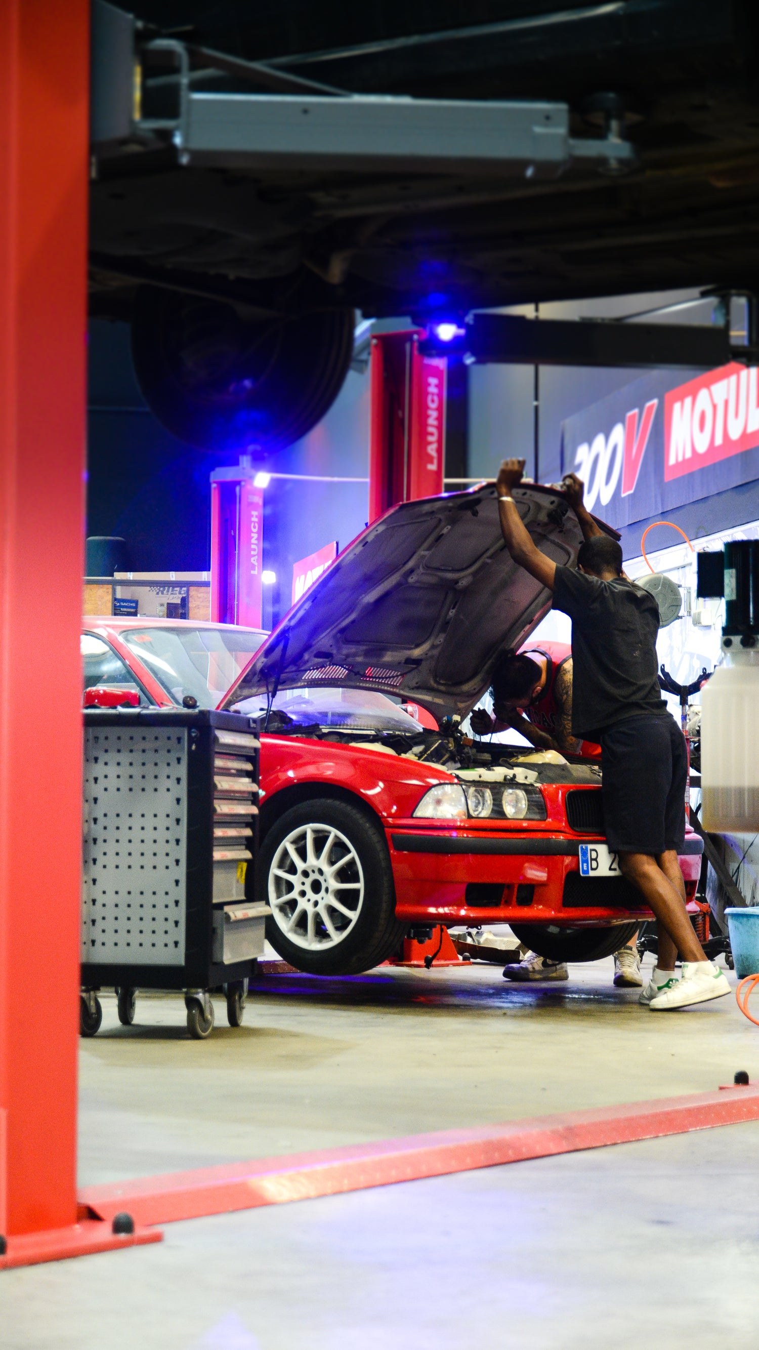 Si eres manitas o disfrutas de meterle mano a tu coche de calle, pista o futuro proyecto, disponemos para ti una zona dedicada para ello, compuesta por 4 boxes con elevador de hasta 3500 kg, carro con más de 200 de herramientas y banco de trabajo. Además, si necesitas algún útil extra como una prensa de muelles, por ejemplo, te lo facilitamos sin coste.